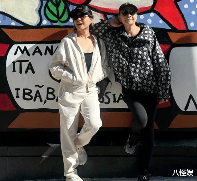照片中,宋丹丹身着黑色修身款上衣搭配棕色长裤,戴着棒球帽,脚上还踩着一双厚底小白鞋,一身时髦装扮很显年轻,笑着看向镜头的她,笑起来眼角都没有什么细纹,状态真好,与一旁小10岁李静看起来像是同龄人。